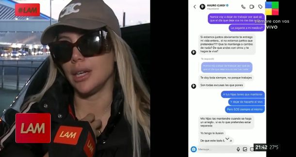 “A tus hijas tenes que mantener y dejar de hacerte el vivo. Pero sos siempre el mismo”, le reclamaba la conductora, a lo que Mauro escribió: “A mis hijas las mantendré cuando se haga un arreglo…si es lo que pretendes estar separada. Yo tengo la ilusión de que esté todo bien”.