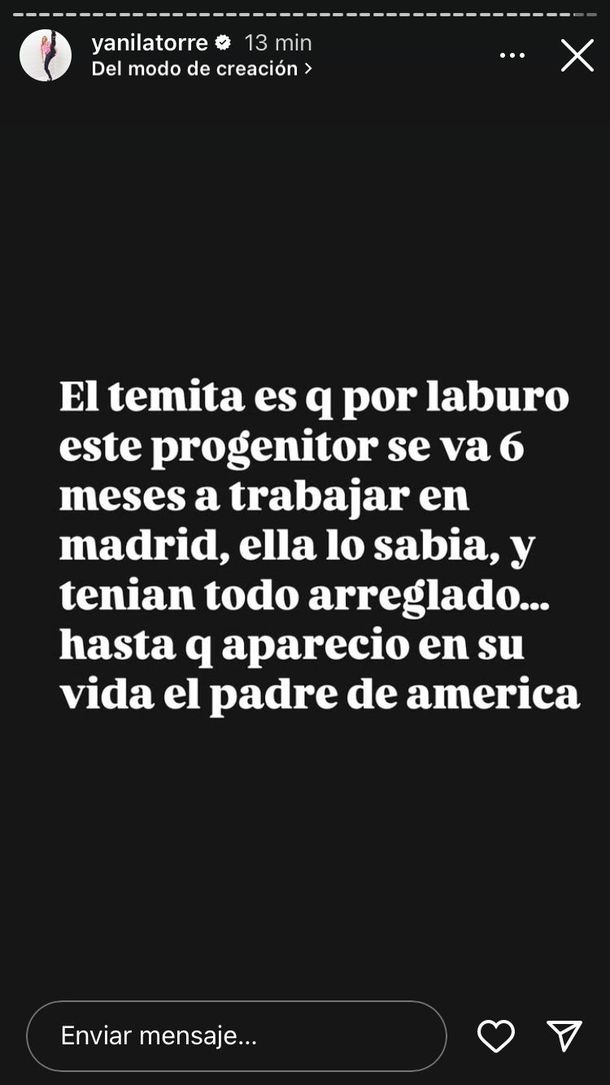 No obstante, la panelista de LAM manifestó que hay otra cuestión en torno a la tenencia de Magnolia y Amancio Vicuña: «El temita es que, por laburo, este progenitor se va seis meses a trabajar a Madrid. Ella lo sabía y tenían todo arreglado… hasta que apareció en su vida el padre de América».