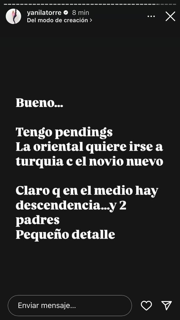 «La oriental quiere irse a Turquía con el novio nuevo. Claro que en el medio hay descendencia y dos padres, pequeño detalle», comenzó indicando Yanina.