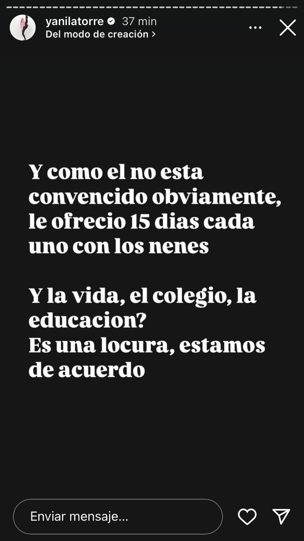 «Y como él no está convencido, obviamente, le ofreció 15 días cada uno con los nenes», lanzó Yanina Latorre sobre la negociación entre el actor chileno y la actriz argentina. «¿Y la vida, el colegio, la educación? Es una locura, estamos de acuerdo», sentenció.