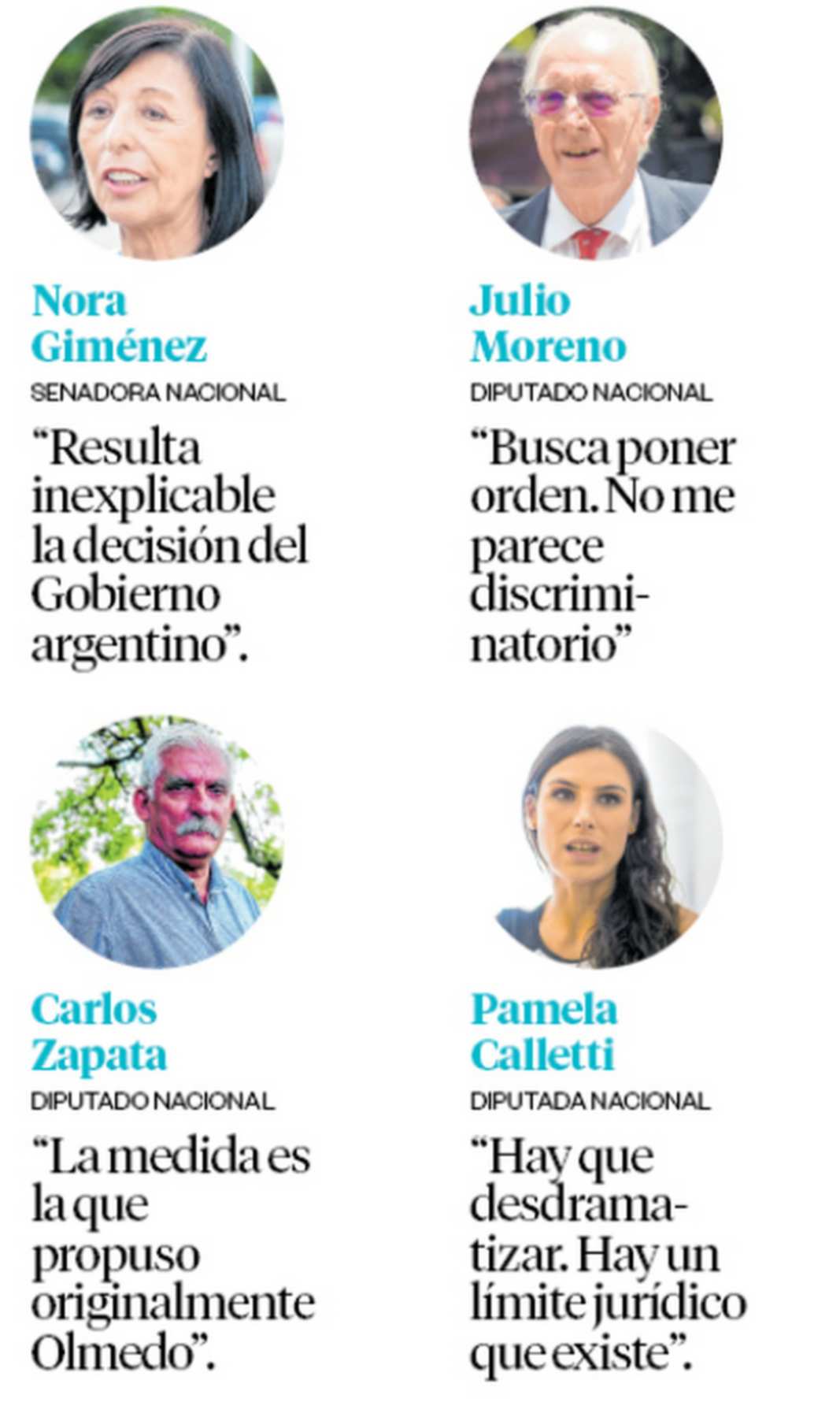 La senadora nacional por Salta, Nora Giménez, manifestó que “tratándose de dos naciones hermanas y socias en el Mercosur, Argentina y Bolivia, resulta inexplicable la decisión del Gobierno argentino de construir una valla en la frontera en la localidad de Aguas Blancas sin notificar al Gobierno de la República de Bolivia. Esto debilita la relación bilateral y aleja la posibilidad de lograr un marco de cooperación necesario para su implementación”.