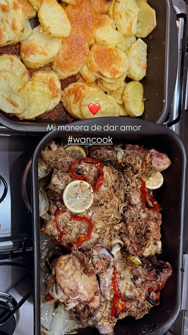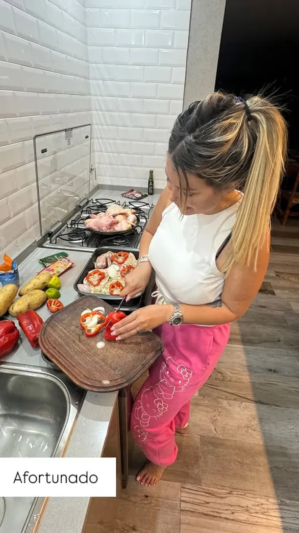 Wanda Nara y L-Gante compartieron un momento de intimidad con sus seguidores, dejando ver un lado más personal de su relación. La empresaria, con un estilo casual y descalza, se encargó de la cena en la casa que alquilaron, mostrando su destreza culinaria en la preparación de un pollo al horno con vegetales.