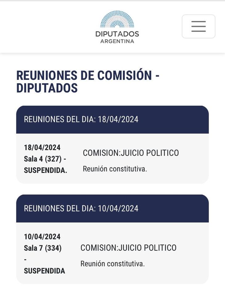 No obstante, en la web oficial del Congreso aparecen en estado “Suspendida” los encuentros del 10 y del 18 de abril sindicados como “Reunión constitutiva”. El interrogante es si en este contexto el sector de LLA más cercano a Menem y Milei conseguiría los votos para nombrar a otro titular.