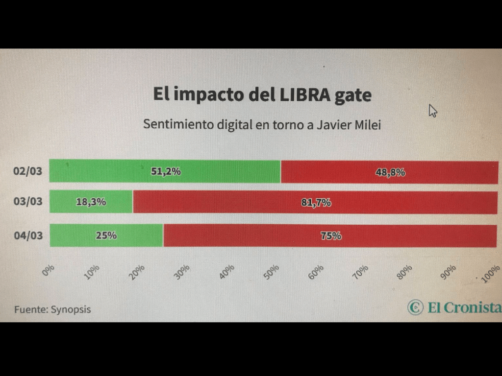 Ahora, una encuesta realizada por la consultora Synopsis midió, por primera vez, el impacto del denominado ‘LIBRA gate’ en la imagen presidencial en un ámbito donde el libertario siempre predominó: las redes sociales.