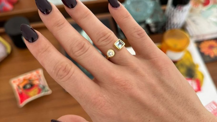 El anillo es de oro con dos piedras distintas, delicado, pero llamativo, moderno y profundamente simbólico.