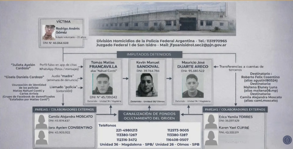 La Justicia federal y el Gobierno confirmaron que el joven militar era víctima de un esquema de chantajes iniciado en una aplicación de citas. Hubo allanamientos, detenidos y una advertencia por el uso de celulares dentro de los penales.